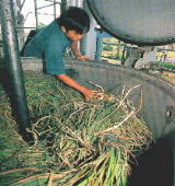"Distillation is used for plants that have the essential oil in the leaves, branches or stems. The plant material is packed into the first tank and boiling water injected