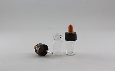 5 ml transparent glass bottles with dropper tops.